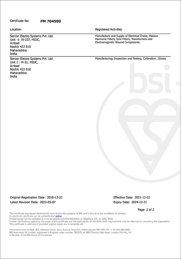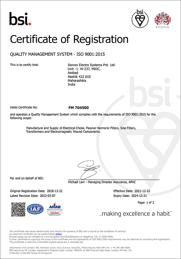 Sercon is an ISO 9001:2015 Certified company adhering to the Global Industrial Standard practices. We embraced the ISO for first time in 2012 & since then we have continued to be an ISO certified company audited & certified by BSI.